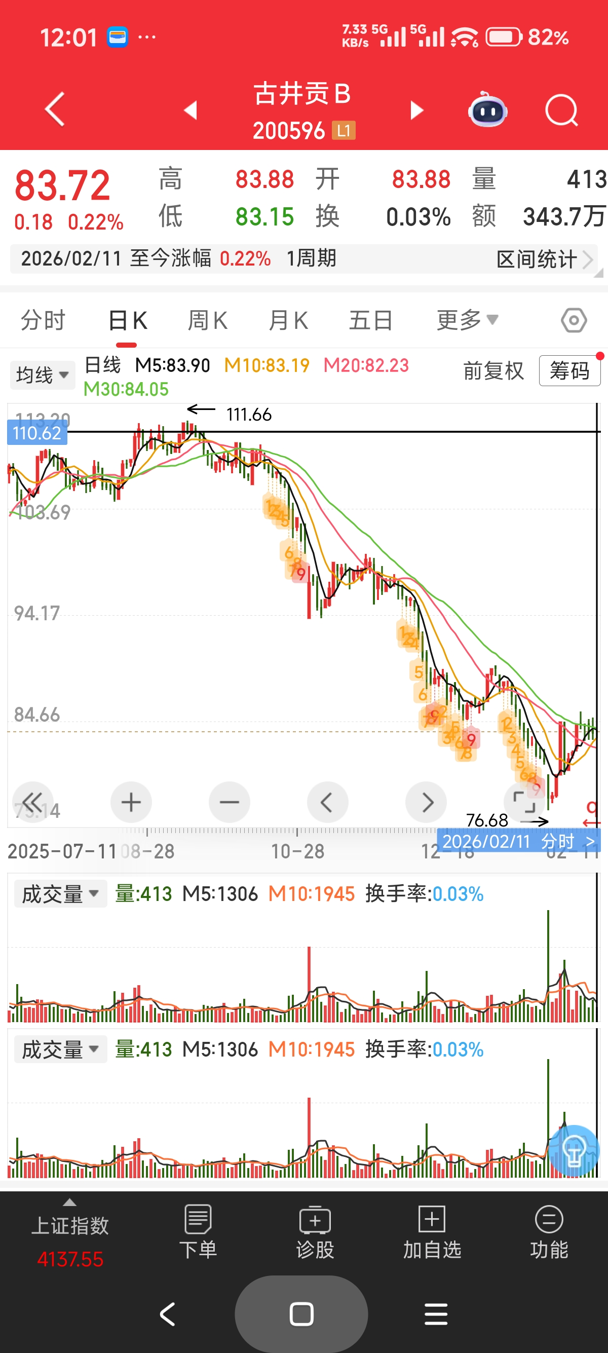 Mis acciones B en Shanghai y Shenzhen siempre están en posición completa. Para comprar, tuve que vender las dos acciones de Gujinggong B y sacar dinero para comprar. ¡Por suerte! Vendí menos y perdí un 20%, compré y gané un 60%. En total, compré 400 lotes en tres ocasiones.