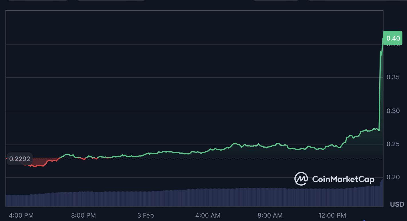 BIRB menyentuh 0,4 USDT dalam waktu singkat, dengan kenaikan lebih dari 70% dalam 15 menit. Saat ini harganya mencapai 0,408 dolar AS.