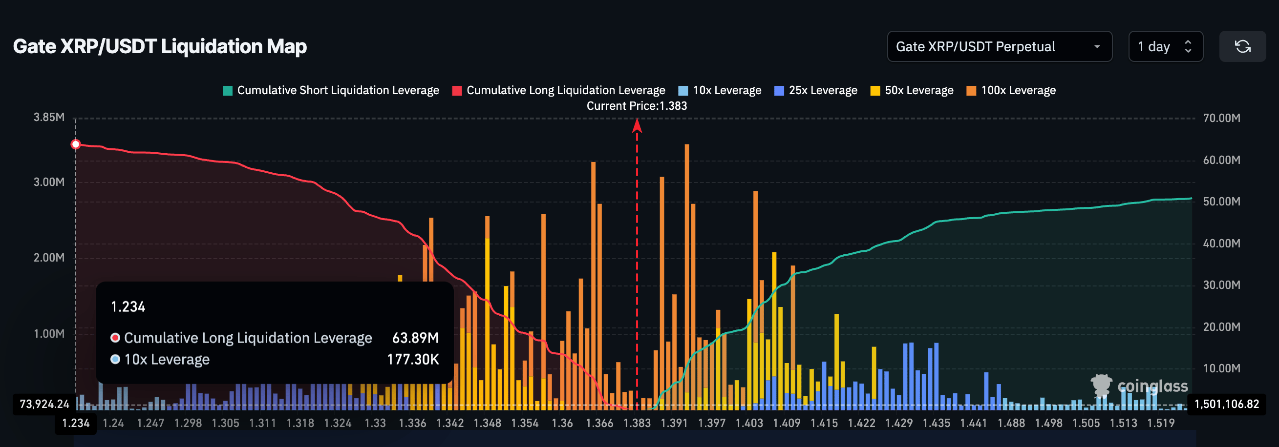 XRPが1.34ドルを維持している限り、テクニカルな反発の構造は崩れていません。ただし、現物買いが明確に回復し、日次終値が1.50ドルを安定して超えるまでは、すべての上昇は調整とみなされ、反転ではありません。Gateは取引所の流動性と清算マップの構造変化を継続的に監視し、客観的な第一手データを提供し続けます。