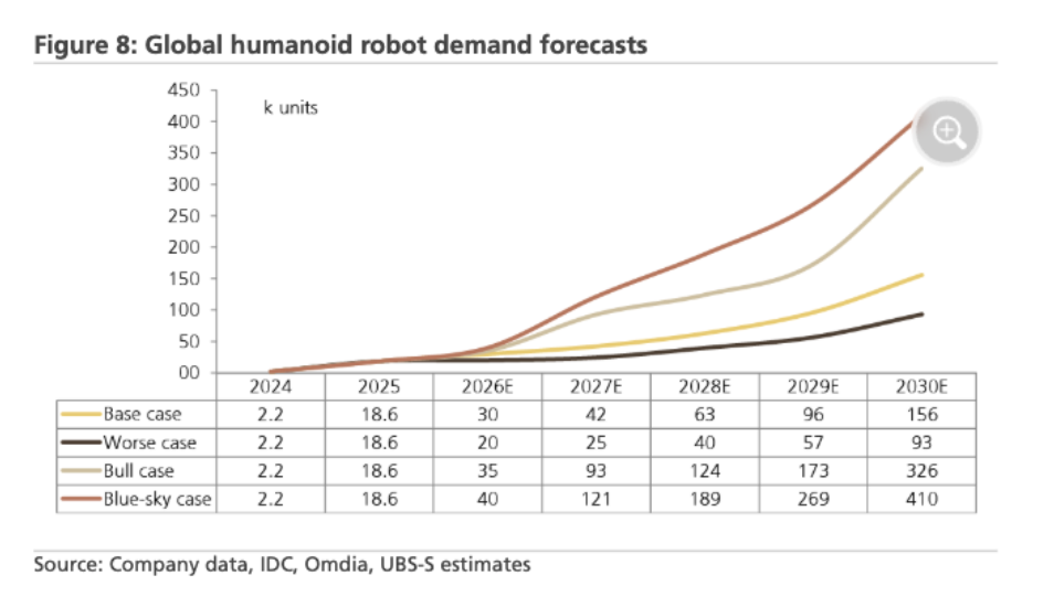 瑞銀は、ロボットの知能レベルと顧客の期待にはまだ差があるものの、メーカーの生産能力拡大計画は市場の将来性に対する明確な自信を示していると考えています。