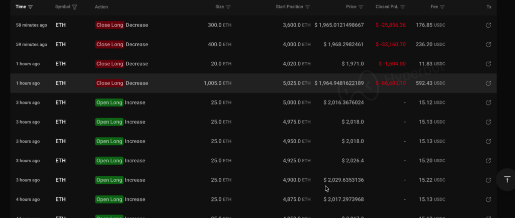 Today (11th), the crypto market experienced another sharp decline in the afternoon, with Ethereum (ETH) dropping below the $1,970 level around 3 PM Taiwan time. Along with the market’s rapid decline, Taiwanese artist Huang Licheng, known for his trading on Hyperliquid, once again drew market attention due to his on-chain trading activity.