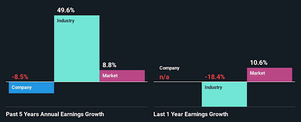 However, when we compared Smart Sand’s growth with the industry we found that while the company’s earnings have been shrinking, the industry has seen an earnings growth of 50% in the same period. This is quite worrisome.